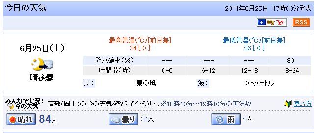 今日の岡山、Max34℃だって。