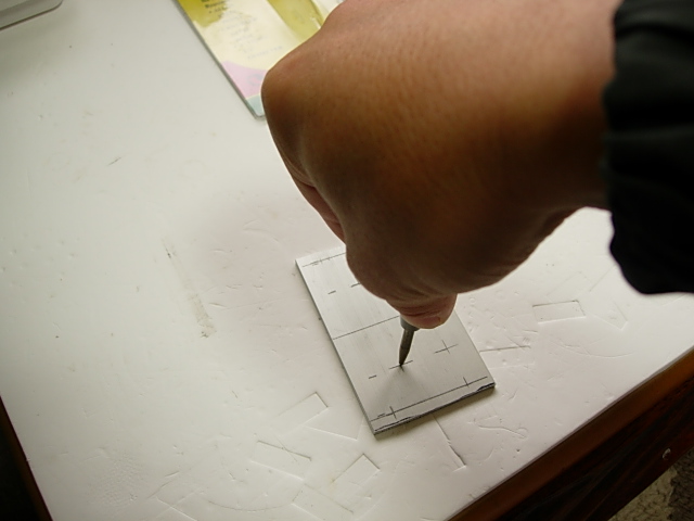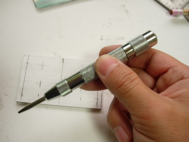 パーツにドリルで穴あけする時、正確に位置決めするためにポンチで凹み付けるのですが、