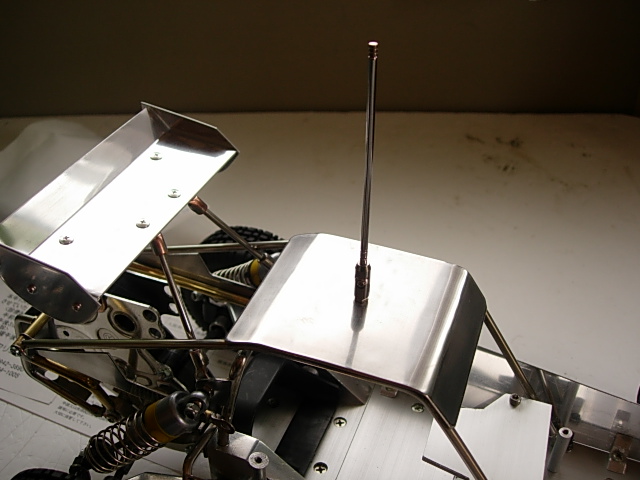 まあ実車でもここにアンテナ付いてるみたいなんで、思い切って穴あけました。