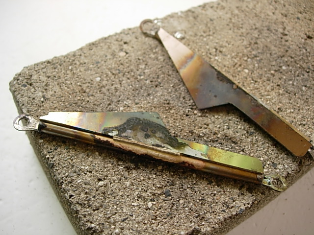 せっかく磨き上げた真鍮パイプが...。