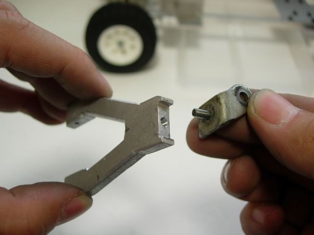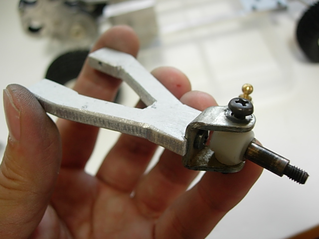 で、問題はコイツらを自作のサスアームに合体させる方法なんだけど。