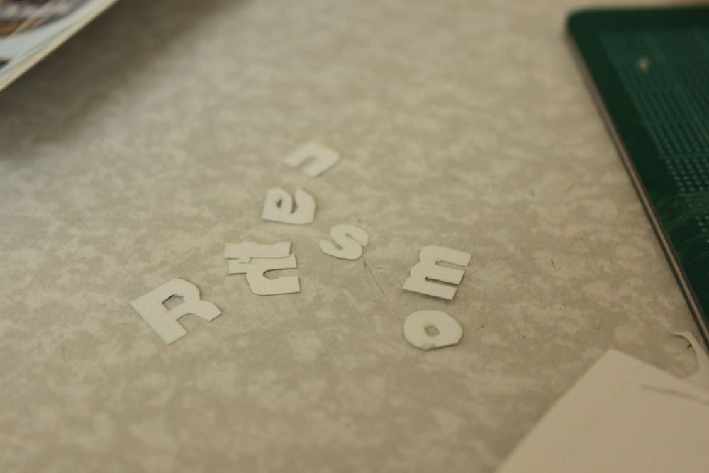 マスキングテープに裏返した文字を綺麗に貼っていき、