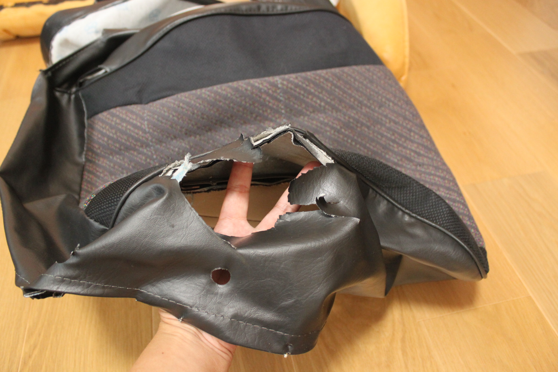 もともと破れてて、穴が開いてるココ。