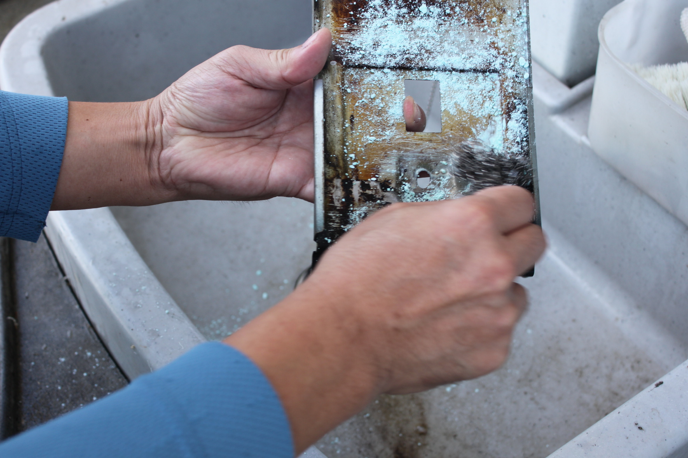 ワイヤブラシで錆をこすり落としてから