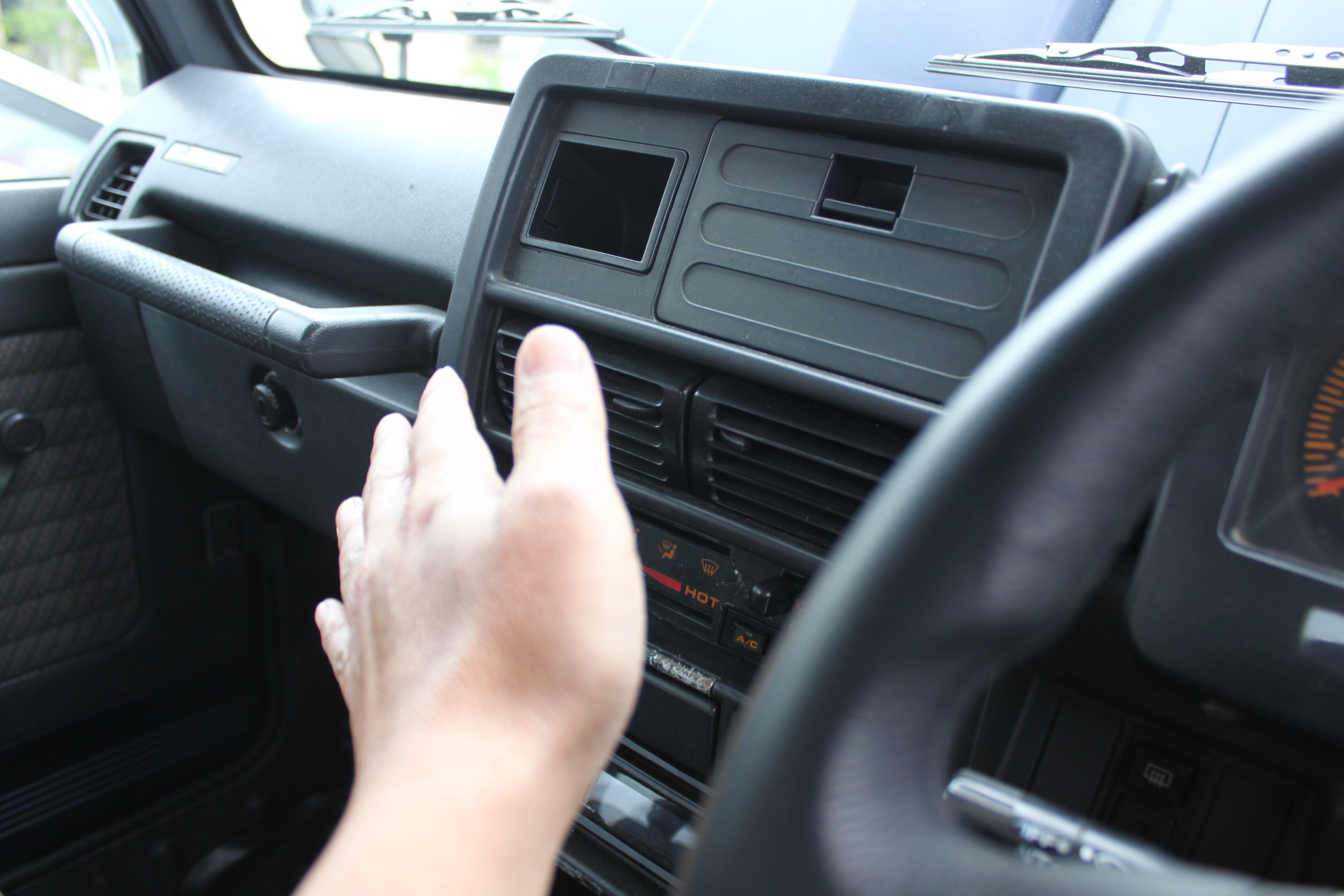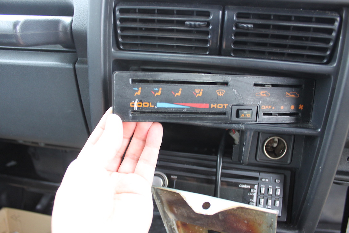 どうもこのジムニーはエアコンの内気/外気切り替えレバーの根元にスイッチが付いてて