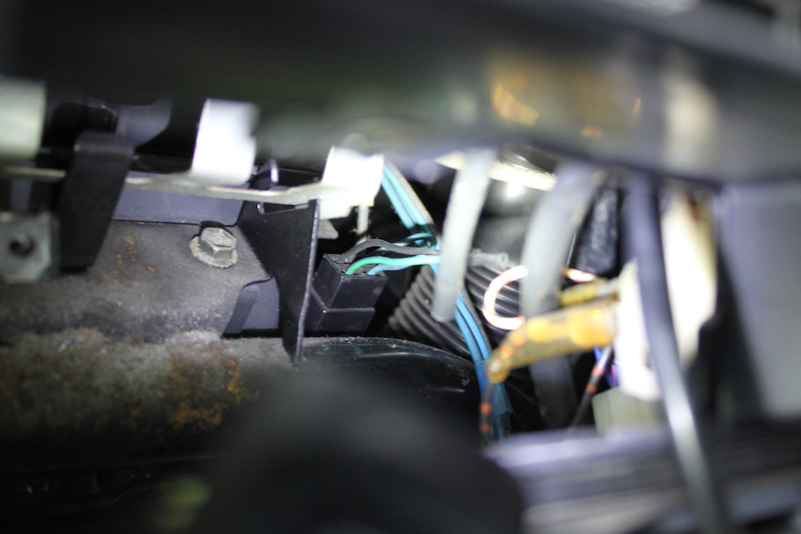 真ん中の黒と緑の配線がついてるのがエアコンスイッチのコネクターです