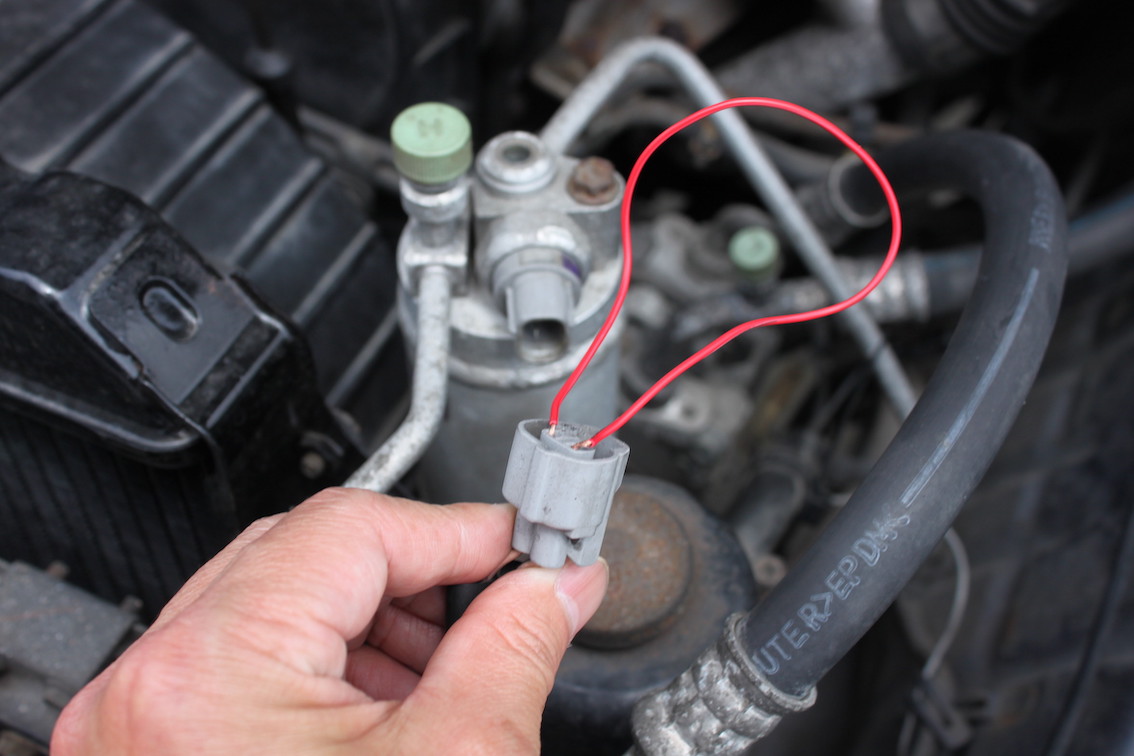 そういえば…先週コンプレッサーに電源直結してエアコン回したとき、コンプレッサー回っても冷風が出てこなかったんですよね