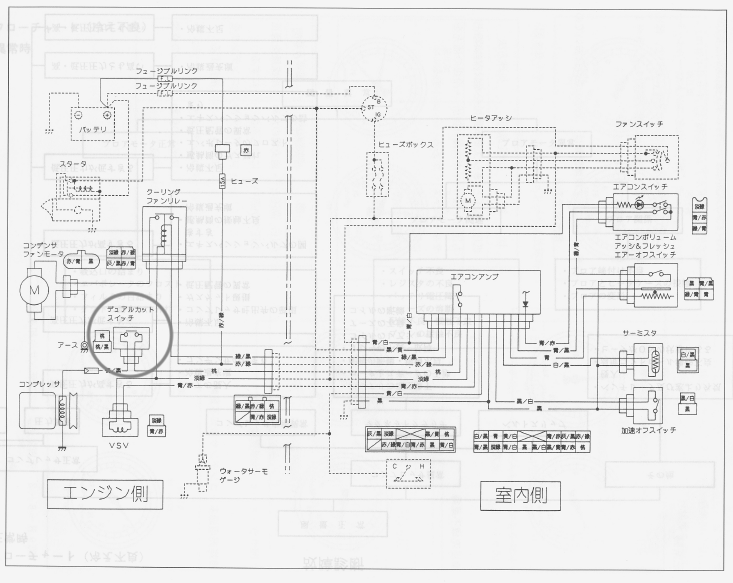 ジムニーDIYレポートさんが載せてくださってたJA11のエアコン配線図