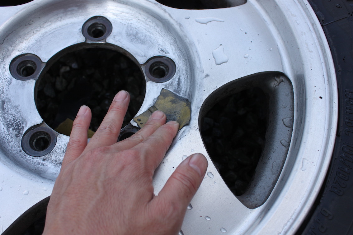 金ダワシの傷もだけど、元々ホイールにあった傷とか錆びも落とせます。