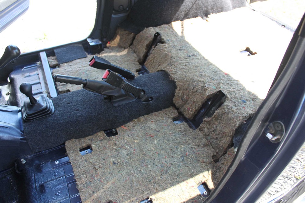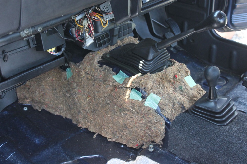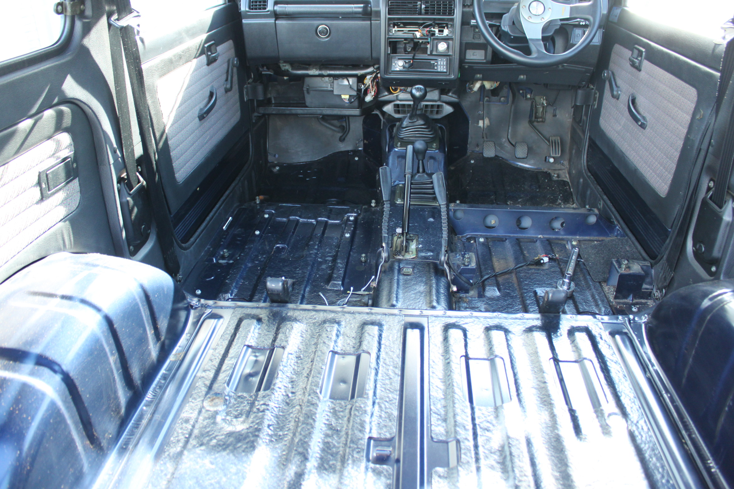 私のジムニーは内装のリフォームすべく、フロアカーペット全部剥がしてこの状態。