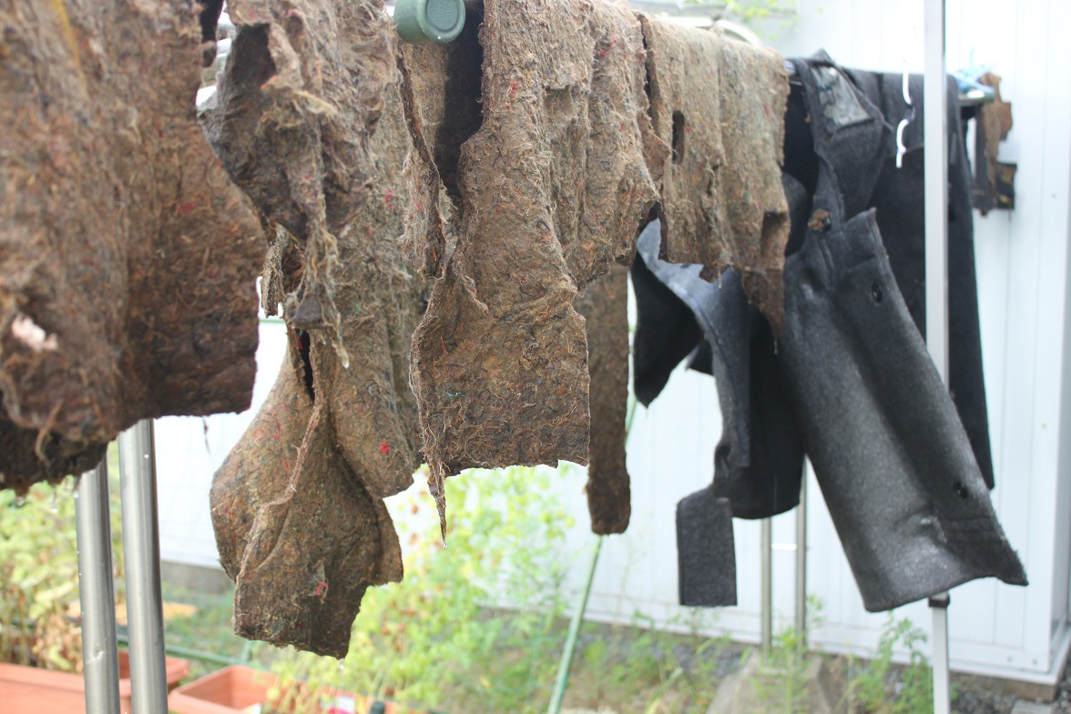 洗ってボロボロになった断熱材の元の形を想像し、並べます。