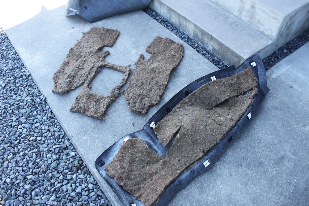 手前のボロボロなのはカーペットの下に張ってある防音材。