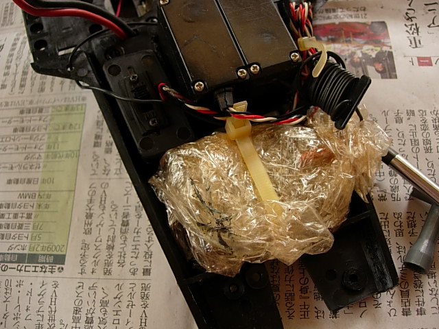 メカデッキの裏にへばりついてた、古~いサランラップにくるまれた物。