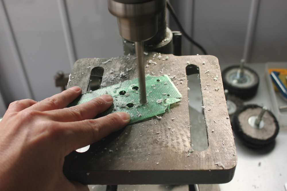 穴はボール盤で開けていきます。