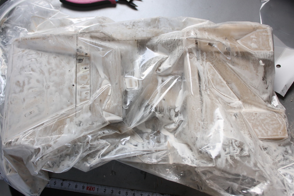 写真右にあるのが接着剤のカスですわ。